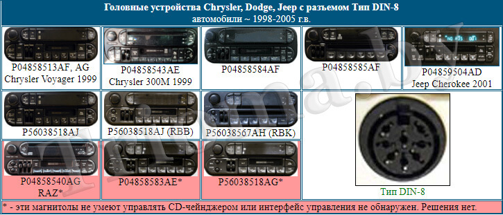 Тип DIN-8 (круглый разъём на 8pin) в автомобилях 1998-2003 г.в. |